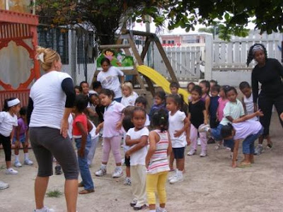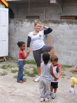 … while Yanezie taught aerobics. Up and down the kids went, kick and clap is what they did, all the while having fun …