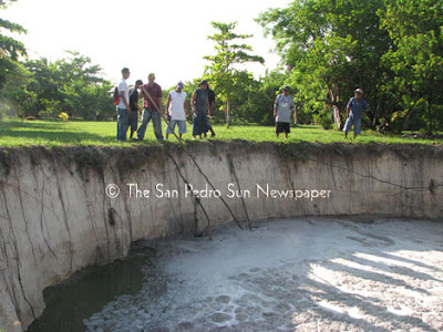 An approximate 30 foot sinkhole was discovered this morning (Thursday, May 28th, 2009) just south of Ak’bol Yoga Retreat on undeveloped section of land. The sinkhole was discovered by Don David Pena, gardener for the resort, when he showed up for work at 7:00 a.m. It is strongly believed that this was caused due to the earthquake which stemmed off the coast of La Ceiba, Honduras. These allegations will be investigated and their results will be posted as they become available.