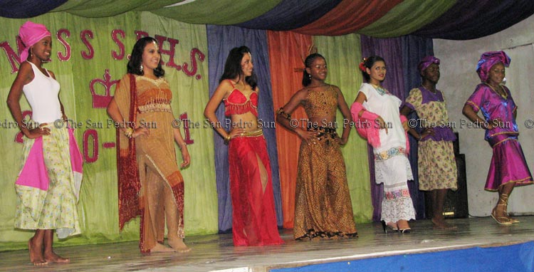 Congratulations to Miss Solani Graniel on her win in Saturday night’s pageant, Miss San Pedro High School, 2010-2011. The pageant was a vibrant one, filled with entertainment and lots of glamour. 7 beautiful young ladies vied for a shot at the title that had been held by Miss Yanira Lara. After several rounds that included talent, sportswear, cultural costumes, and beautiful evening gowns, plus entertainment, Miss Graniel was announced the winner. First runner-up was Tricia Acosta, and second runner-up was Portia Belisle. The other lovely young ladies up for the title included Briseidi Vanegas, Jaleni Lawrence, Miriam Palacio and Xenaika Armstrong. Congratulations to all – you are all winners!!