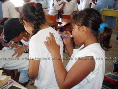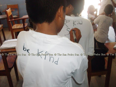 Students of the San Pedro R.C. School today encouraged each other to show a little kindness – marking the clothing of each other, with kind words, encouraging each other to cease the violence, practice patience and offer a word of kindness to all!!!