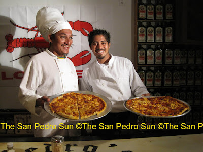 Thursday night Joey Stevens and Bob the Parrot joined the San Pedro week-long Lobsterfest fun at Pedro’s Inn. And what was on the menu? LOBSTER PIZZA of course!