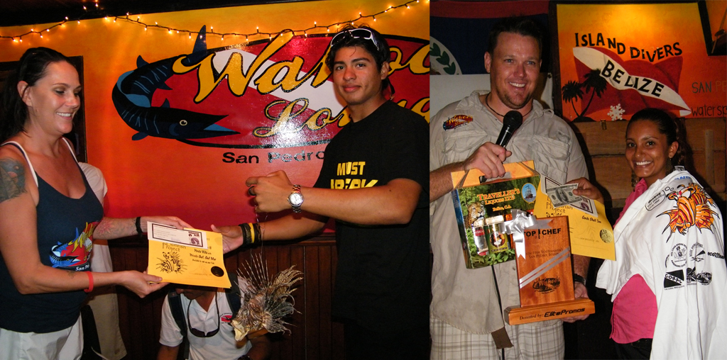 In first place was Island Divers for capturing 167 lionfish. For this they won an overnight stay at a private villa with private chef, Chef Mar available to cook up their catch; two round trip tickets to Belize City courtesy of Tropic Air; $400 courtesy of Ambergriscaye.com and a taxidermy lionfish trophy courtesy of Mr. Dimas Guerrero.