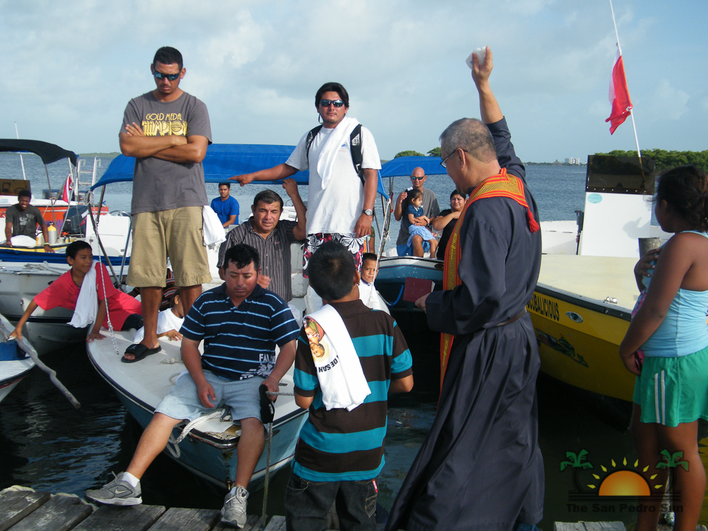 At 6AM, the statue of Saint Peter was then taken out of the church and placed on the bow of a boat for an annual boat procession, a tradition that the island has maintained for over 30 years. The procession left from the municipal dock and slowly moved northwards. The group of church goers in the leading vessel conducted a small service on the moving vessel. The fishing vessels then turned left into the Boca del Rio cut, winding through the lagoon and then eventually going into the Laguna de San Pedro. Once in the lagoon, the procession ended at the El Embarcadero Area. After a short prayer by Father Año-Nuevo, boat captains and fishermen each had their vessel blessed as a symbol of protection while at sea. Once blessed, the vessels slowly departed, making way for other vessels to be blessed.