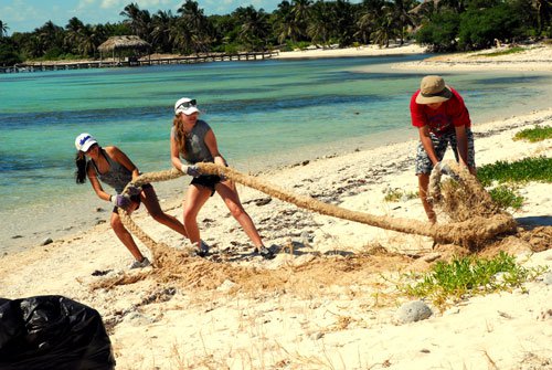 Green Reef through the assistance of some visiting foreign students was involved in a beach cleanup of a portion of the turtle nesting area on northern Ambergris Caye. The cleanup campaign of the sea turtle nesting beach was conducted on the eastern side of the island between Robles and the Rocky Point beach areas on July 18th and 19th.