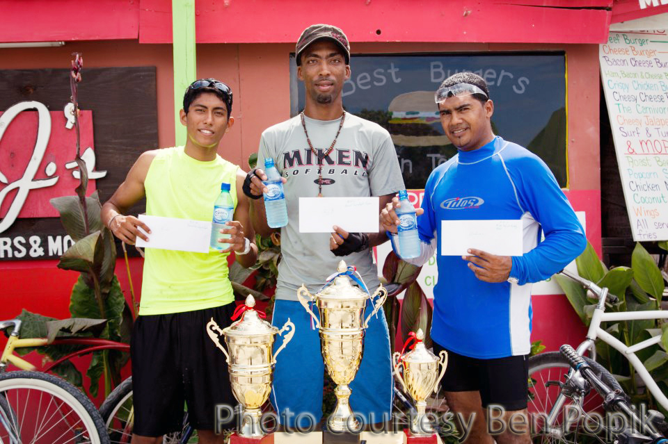 Reaching the finish line first and taking home $250 cash, a trophy and round trip ticket courtesy of Tropic Air was tri-athlete Kent “Bob” Gabourel. In second place and taking home $150 cash, a trophy and round trip ticket courtesy of Tropic Air, was fellow tri-athlete Eric Donis. Veteran cyclist on San Pedro, Andrew Vasquez won third place, taking home a trophy, $100 cash and a bar tab at Caprice in the amount of $100.