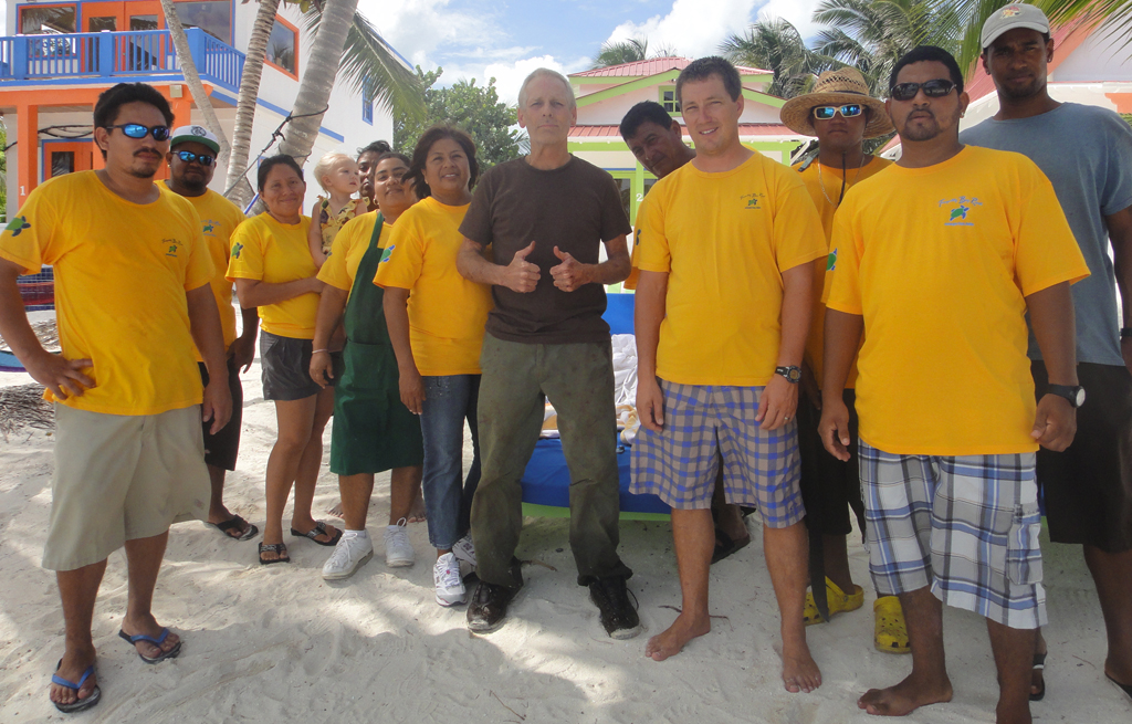 According to Isabelle Settle, Administration, Guest Services and Human Resources Manager at Tranquility Bay Resort, the Tranquility Bay staff heard a gentleman shouting ‘help me’ from far in the bush behind the resort. “All the staff, and manager Carlos Settle gathered, and then divided themselves in a few groups and ran straight in the bush. After about 30 minutes, one group found him. He was trying to find his way out of the wood but he was hardly walking and stumbling after every step. Some of the staff came back to the resort and grabbed towels, water, sugar, pedialyte and brought stuff for him. He was brought back to the resort with the help of the manager and staff, fed, covered and of course was given some more sweet water to drink. We also took care of cleaning his bug bites as he was covered with them. The guy was shivering, fully dehydrated, covered in bug bites as well as having his hands spastic with cramps. One of the staff drove his golf cart back to town and we took him to the polyclinic by boat,” said Settle.