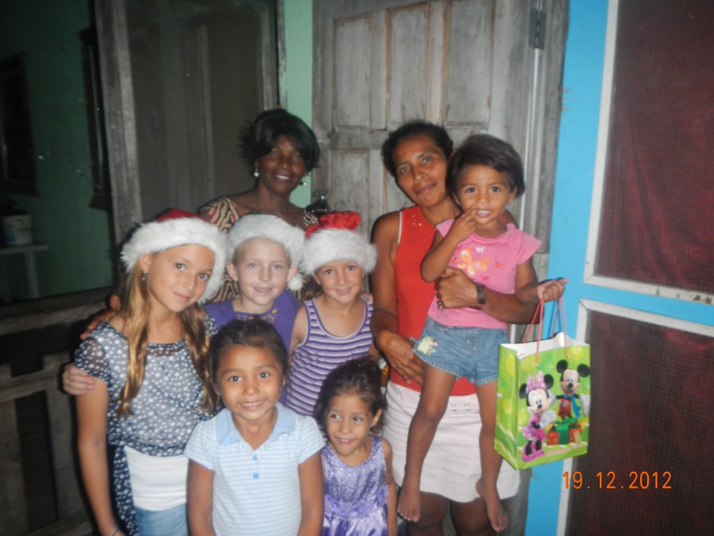 The three girls, together with the encouragement and support of their mothers, organized a bake sale to raise funds to purchase items such as washing soap, bleach, soap, shampoo, tooth brushes and tooth paste, staple food items including rice, beans, flour, sugar, eggs, milk, herbs and spices, potatoes, carrots, fresh bell pepper, onions and tomatoes, along with a Christmas dinner of turkey, stuffing and yams, and a toy to each child of the family.