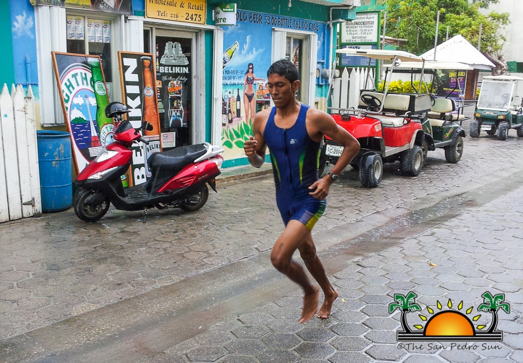 The groups of competitors were divided into Under 14 and Over 14. The race began shortly after 10am, and a crowd gathered at Central Park to cheer on the young athletes. The competitors first took to the sea, swimming laps around markers that had been set out. Not even a little rain could interfere with the ongoing race. Once the swimmer completed his laps the next phase of the race took part with cycling and then running laps through Barrier Reef and Pescador Drive.
