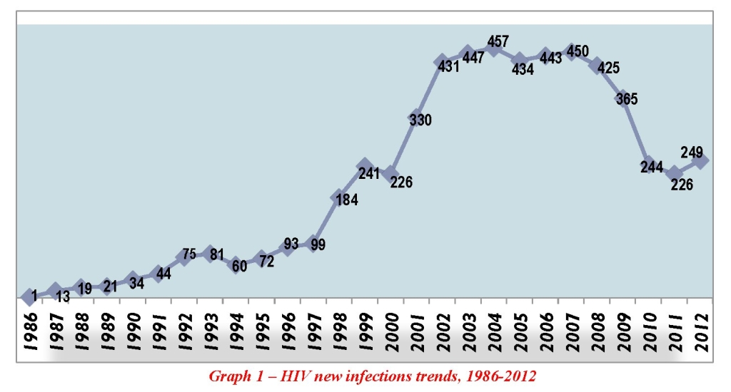Human immunodeficiency virus (HIV) has plagued the country for decades. It has been one of the core concentrations of studies in efforts to alleviate the problem and lower the numbers of infected persons. In 2012 there was a significant increase in the total number of HIV tests conducted countrywide when compared to 2011 data. The data also reported that more females are being tested than males, but that more males are turning out positive. The total figures in 2012 represent a 10% increase in the total number of reported new HIV infections when compared to 2011 data. This is of much significance as this is the first increase in the last four years as the trend had been showing decreasing numbers of new HIV infections.