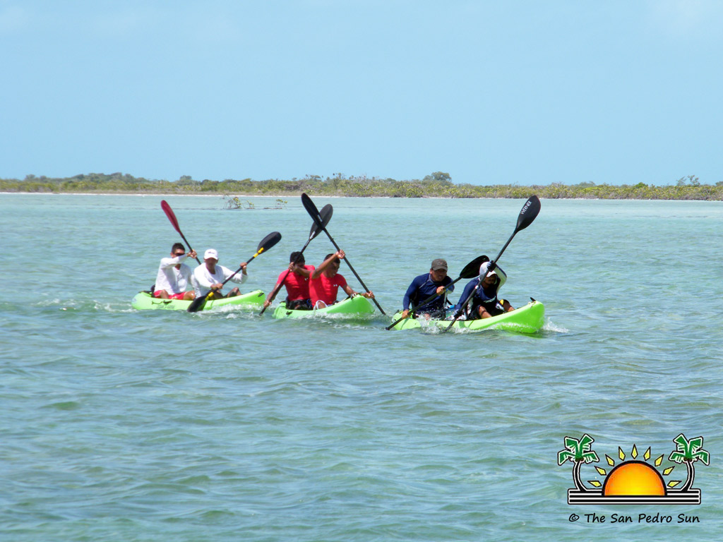 The challenge started shortly after 7AM and by 7:55AM they were into the channels that lead into the Cayo Frances Lagoon. The lead teams were out of the Cayo Frances Lagoon by 9:50 AM. The two teams leading the challenge is Sparta Boyz comprising of Sergio Lopez Jr and Jesus Linares and Las Tortugas made of Edwin Casasola and Cesar Salazar. Happy Cow made up of Alfred Lopez and Byron Cruz is in third place so far.