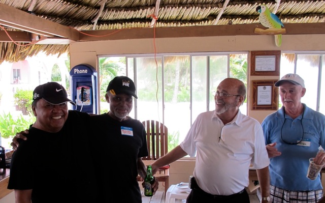 The South Ambergris Caye Neighborhood Watch group (SACNW) held its annual September potluck event on Sunday the 15th at the Caribe Island Resort. The gathering is a fun way for neighbors to get together in a social atmosphere and enjoy the beach, the company and some wonderful food. This year the food was plentiful and varied – and all gone by 2pm! Bob Utsman was kind enough to hold a Chinese auction and this event raised $325 in a short 15 minutes of laughter and daring. The happy winner was our very own Jan Brown from the Marco Gonzalez Archeological Reserve. The prizes were generously donated by Wine De Vine, the Black Orchid Restaurant and the Belize Chocolate Company. Guests included a handful of police officers that are always glad to assist SACNW in its endeavors. SACNW takes this opportunity to thank the Caribe Island Resort for graciously hosting this event.