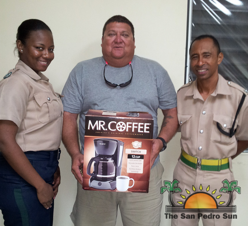SP Police recieve coffee maker 1Receiving the gift was Commanding Officer, Luis Castellanos whom is grateful for the people’s support of the SPPD. Castellanos and the entire police force would also like to thank Councilor Gabriel “Gaby” Nunez, Samuel Gomez, and Karim Maroun of BOAZ Golf Cart Rental, for loaning vehicles during the September Celebrations weekend. They also thank the general public for exercising control and good behavior during the festivities, since crime was at a minimum.
