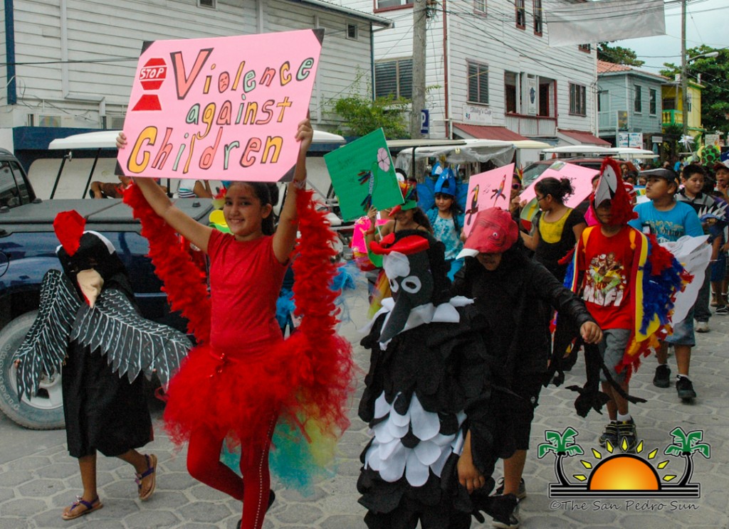 Educational institutions across the country celebrated Children’s Day on Wednesday, November 20th under the theme “Stop the violence against the children”. In San Pedro, Children’s Day activitiesfor the San Pedro Roman Catholic Primary School (SPRCS) culminated with a grand parade on Friday, November 22nd. Close to a thousand students from SPRCS took to the streets in colorful costumes, waving colorful banners highlighting this year’s theme.