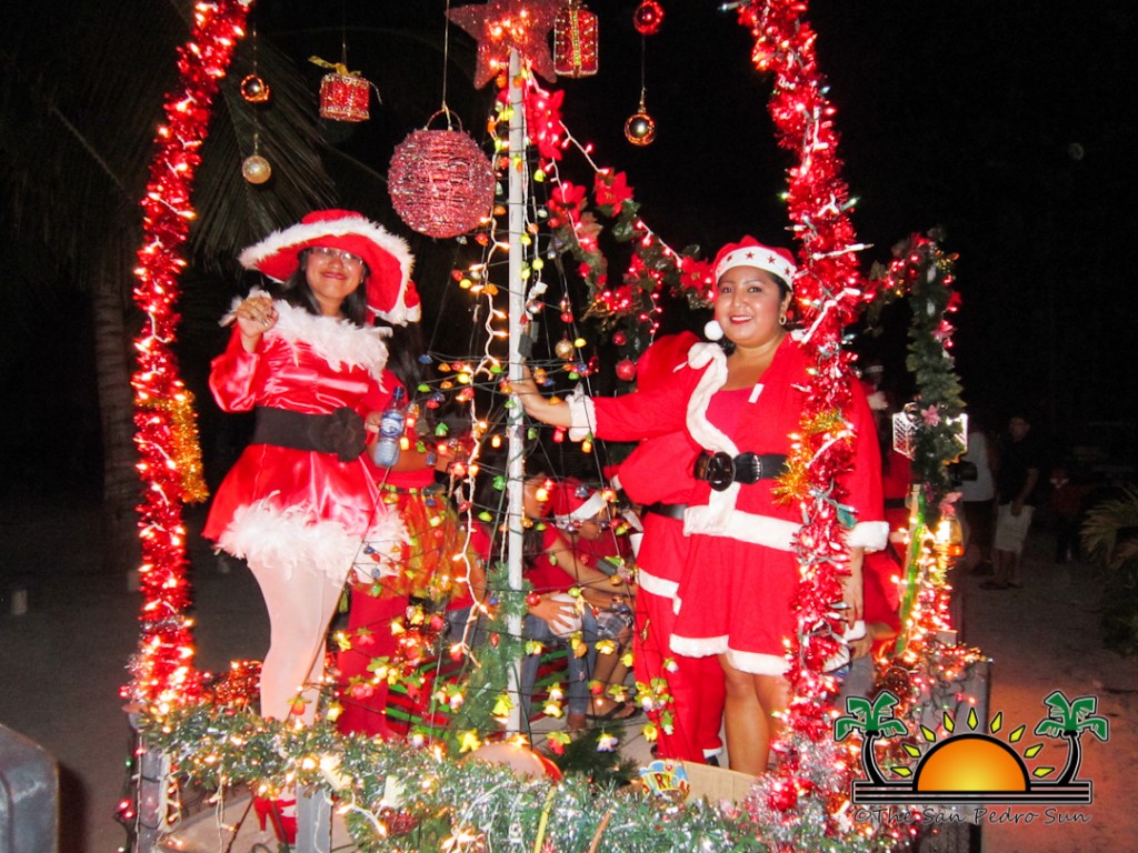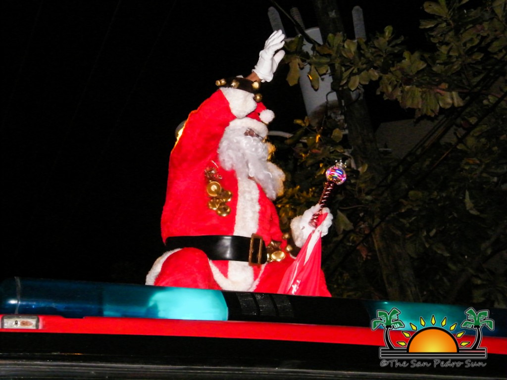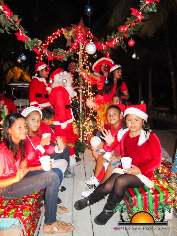 The lights, music and the merry makers dancing along the streets was all that was needed to spark up the Christmas feeling on the island. Several organizations, residents and establishments decorated their vehicles and floats and joined in the parade. At the front of the parade was the San Pedro Fire Department’s shinny red truck with Santa Claus riding on top. All through the streets of the town, Santa waved and shared candy with residents that had lined up on the street sides. Volunteer elves and other Santas rode on a variety of floats and carts, distributing goodies to the children and bringing many smiles to those in attendance.