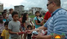 Following their stop in San Mateo, Mayor Guerrero and his reindeer returned to the North Pole (Council Headquarters) were elves had gifts prepared for the children of San Pedrito. Children swarmed Santa’s sleigh as he made a stop in the area. Again, over 500 gifts were given out in the area and the children were equally excited to receive their Christmas presents.