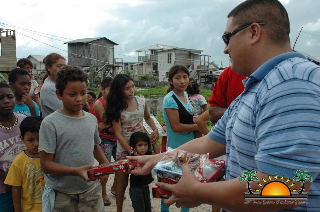 The San Pedro Town Council, led by Mayor Daniel Guerrero, was busy on Friday afternoon December 20th, giving out gifts to the children of San Pedro Town. Joining the mayor on his Christmas ‘sleigh’ were elves (councilors) Kenrick Brackett and Wally Nuñez as well as members of the San Pedro Traffic Department and a few other volunteers.