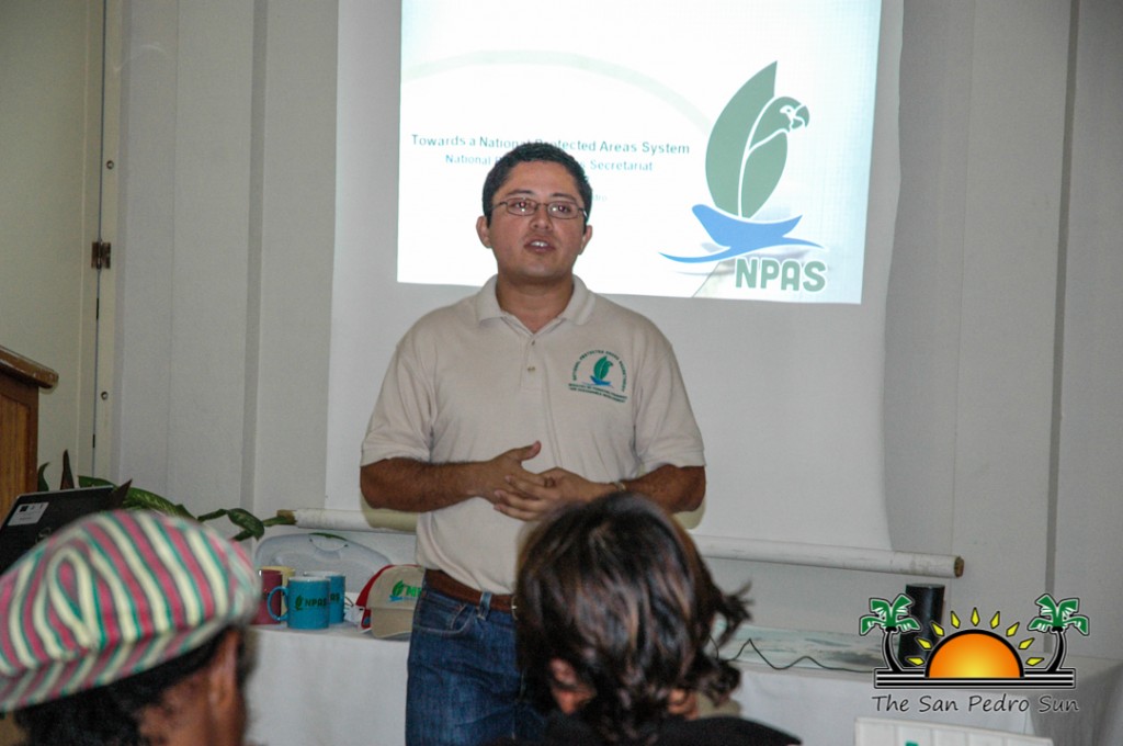On the evening of Thursday, January 30th an update presentation on the National Protected Areas System (NPAS) was held at the Sunbreeze Conference Room. Stakeholders such as local tour guides and interested parties from the Bacalar Chico, Hol Chan and Caye Caulker protected areas were invited to attend the informative meeting. Lead by the NPAS Secretariat, Valentine Rosado, Education and Public Awareness Coordinator, Arlene Maheia Young, Acting Program Director and Ansel Dubon, Project Manager, the presentation was designed to review the goals and purpose of NPAS and introduce a new branding campaign.