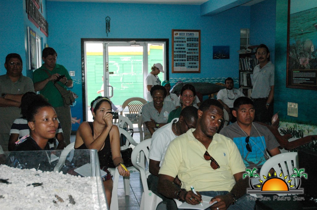 The group of participants included two from Barbados, one from Grenada, one from Saint Kitts and Nevis, one from the Dominican Republic and one from southern Belize. While in Belize, they met with the Belize Fisheries Department and various protected areas management agencies such as the Belize Audubon Society, The Protected Areas Conservation Trust and ECOMAR. The visiting group also travelled to Sarteneja in the Corozal District where they met with the Sarteneja Lions for Conservation and Development and saw how the protected areas have impacted a traditional fishing community. Following their visit to mainland Belize, the group came to Ambergris Caye on February 6th, 7th and 8th. While here, they had the opportunity to see the way two marine protected areas have evolved and the impact they have had on the development of a tourism dependent island and the role the community plays in the protected areas.