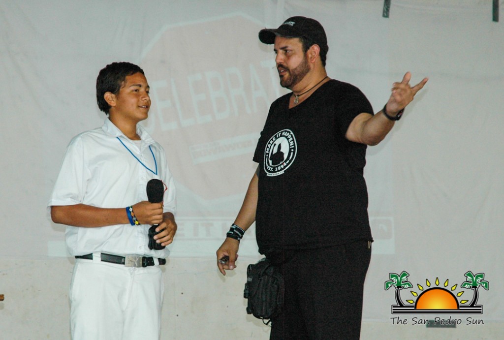 Bert Oliva Restore Belize Motivational Talk-5During his two-hour stopover on Ambergris Caye, he met with the SPHS students and members of the public at the Rafael Angel Nuñez Auditorium, where he engaged the participants in a number of activities. “The message Oliva brings across is very fitting. Many students across Belize want to forget things, or do not pay any attention to what they want to be in their lives, but they can actually relate to the way in which he brings across his message. Oliva shares personal tools with them on how to look at life by overcoming challenges and reach their goals,” said Enriquez.