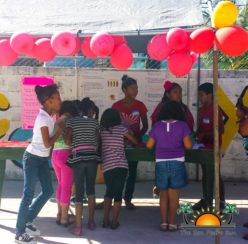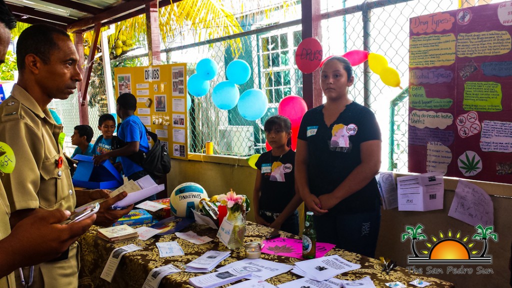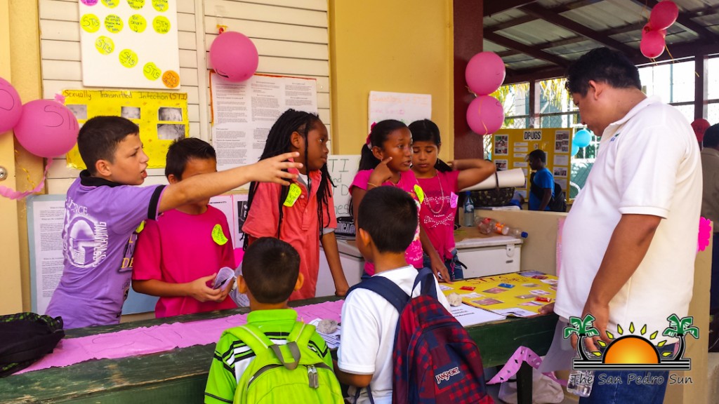 Using an array of pamphlets, examples, games and more, the students not only explained their topics but also identified the problem’s causes in a community. A group of standard six students, whose topic was Alcohol Abuse, explained how the heavy consumption of alcoholic beverages is affecting the youth of San Pedro. “Children of San Pedro are drinking alcohol before they turn 18. This is causing health problems such as Cirrhosis of the liver,” explained one of the group members. Castellanos further elaborated on the topic, giving real life examples of alcohol abuse that occur in San Pedro Town. After a series of fun question and answer games it was time to move to the next booth.