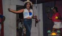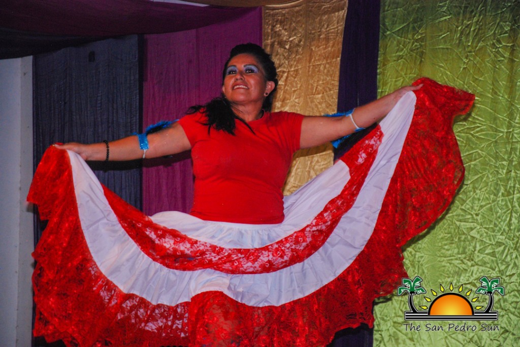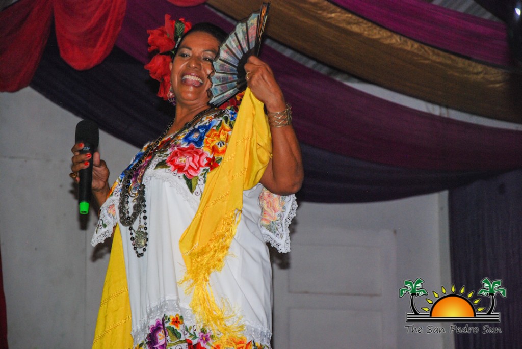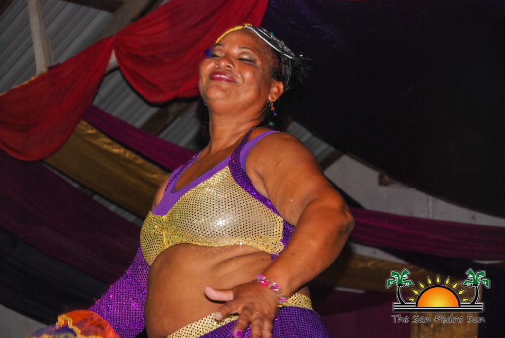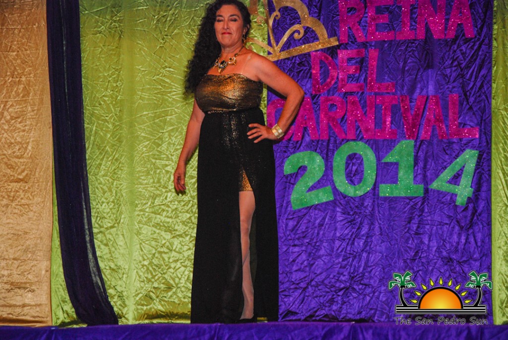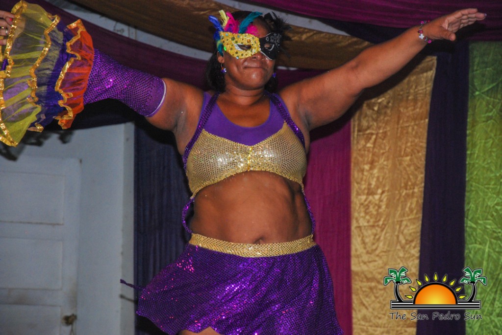 The contestants wasted no time in getting the show underway as they hit the stage in their sports wear. From football players, to fisherwomen, swimmers and softball players, the stage saw no shortage of athletes. The talent presentation followed right after. First to take the stage was Shelly Huber, dressed in a lovely Mestizo comparsas costume. She presented a monologue on the history of Carnaval, dancing and singing depicting the spirit of Carnaval. Following Shelly was the ever vibrant Sherlette who lit up the stage and had the audience going with her electric dance moves. Not long after, contestant number three Leonor Rosado, delivered not stop laughter to the crowd as her drama presentation and funny costumes illustrated the excitement that builds with the arrival of Carnaval. Edilma glided on stage serenading the crowd with her song presentation, while the lively Mel took the audience back in time with her as she presented a skit on her first experience of Carnaval in San Pedro. Contestant number six Zeida, closed off the talent segment with another dance number that the audience loved.2014 Reina Del Carnaval-33