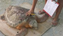 On Saturday, February 22nd a female Loggerhead turtle was found stranded in a stretch of beach in the Maya Beach Area of the Placencia Peninsula by a tourist from Minnesota, USA. The turtle was observed to be severely dehydrated and in poor physical condition. Authorities were called on scene and the turtle was transported to a nearby resort until arrangements could be made to transport it to the Ambergris Caye Marine Turtle Program rehab center at Hol Chan Marine Reserve.