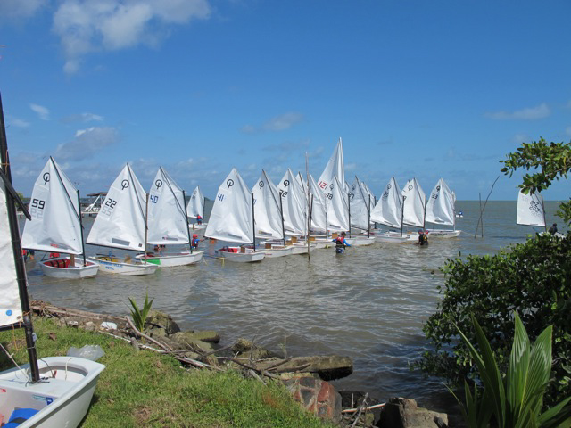 On Sunday, March 9th, the 86th annual Baron Bliss Harbor Regatta was held as part of the opening events for Reef Weeks. The regatta was presided over by Governor General Sir Colville Young. The Baron Bliss Harbor Regatta consisted of four races with 47 participating sailors in the optimist class. Once again SPJSC claimed the first place as Kevin Vasquez took the win with three points. Second place went to Antonio Ricardez Jr. of BCSC with seven points. Blanca Vasquez of SPJSC came in third with 13 points, followed by Trent Hardwick of Sea Scouts in fourth with 14 points and Faith Noel of SPJSC in fifth with 15 points. Top ten finishers included: Gorge Olivarez (SPR) in 6th, Jerdon Anderson (SPJSC) in 7th, Patrick Rhamdas (PSC) in 8th, Christian Trejo (SPJSC) in 9th and Tyler Garbutt (PSC) in 10th. Other participating members of SPJSC included: DavinPuc in 11th, Samantha Velasquez in 13th, Beverly Medrano in 14th, Kathryn Salinas in 17th, Lucy Verralls in 20th, Katie Maxson in 25th, and Gabbi Knox in 35th place. SPR members included: Sarah White in 14th, Mitchell Sersland in 30th, David Syme in 46th and Caroline Sersland in 47th.