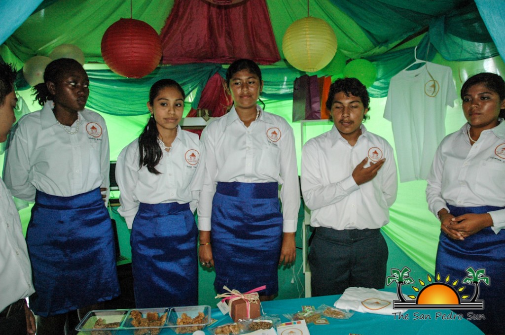 SPHS 2014 Business Fair-11Businesses ranged from Aquaculture products to non-alcoholic wine beverages. Throughout the day, judges visited each booth, scrutinizing the projects and testing the group members’ knowledge of their product. Judging the juniors was Jorge Aldana from San Pedro Social Security Board, Rosalyn Tzib from San Pedro Scotia bank and Janelle Cowo from The San Pedro Sun, while the seniors were judged by Julie Acosta from Saint Francis Xavier Credit Union, Arleni Dominguez from San Pedro Atlantic Bank and Raquel Ramirez from Caye International Bank.