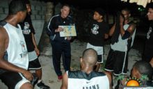 When the game resumed, Greg Rudon of Belize City picked up a missed shot from Kevin Domingo and caught the first of a series of points in the second quarter. Tigersharks’ Winston Pratt made an impressive play after he picked up a loose ball from No Limit sinking a three-point shot into the basket in front of a frozen Kevin Lorenzo. Pratt’s impressive performance was his second appearance for the night in which he picked up 20 points for the home team. Just before the halftime break, a crash between Pratt and Rudon sent Pratt to the ground smashing his forehead and temporarily stopping the game. He continued with the game later after he got a bandage over the swollen and bleeding right eye. At the half, the Islanders boasted a 40 to 33 lead over the city boys.