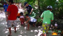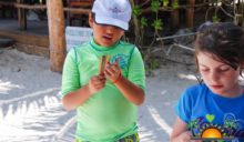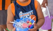 Divided into age groups, children sought the colorful craft sticks that were half-buried in sand, stuck on leaves, littering the trail and even in small puddles, squealing with excitement when they located a particularly elusive stick. Armed with handfuls of their find, they marched back to the table set up on the beach, ready to claim their prizes. Bags full of candy filled eager hands, and every child was happy (and very sticky) by the end of the big hunt. It was certainly a sweet, happy Easter for them!