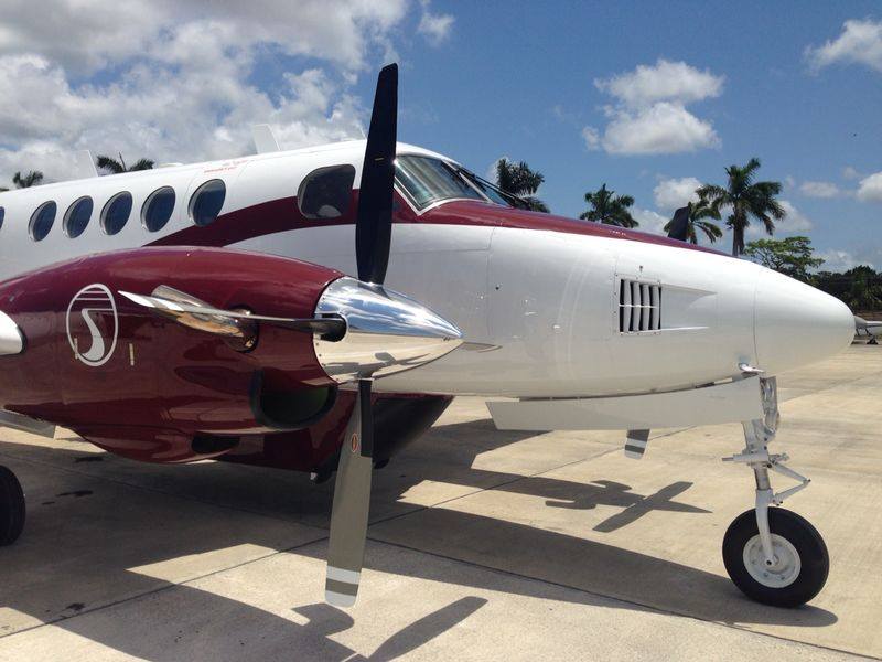The King Air is a pressurised, air-conditioned, high-speed, twin-engine, jet prop aircraft. Its pressurised cabin is designed for high altitude and high-speed (250 mph) flights. “Its two abreast seating in a 12 passenger configuration will also allow for the higher level of executive seating that our passengers are asking for” said John Greif III, President of Tropic Air. “We were pleased to introduce the modern glass cockpit Cessna Caravan to Belize, and now we are pleased to once again raise the bar of air comfort for our passengers with the King Air”