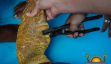 Meanwhile Ellen was brought in from Placencia (southern Belize) in February 2014 after she was found by a tourist who found the weak, stranded reptile on the beach. Authorities were notified and Ellen soon became a resident at the Hol Chan Marine Reserve office, where the crew from the Ambergris Caye Marine Turtle Monitoring Program cared for the adult female loggerhead. The loggerhead, who measures 71 inches, had ingested waste material and after undergoing a series of treatments, was able to pass the swallowed materials and soon made a full recovery. Ellen was named after the Minnesota, USA tourist who found the ailing animal on the beach.