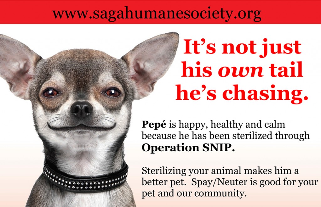 Now, Pepé is a happy, healthy and much loved pet. Instead of thinking of female dogs all day, wandering around to find them and being a pest, he stays home, loyally protecting his new family, and most importantly of all, the only lady in his life now is his best friend, Maria. Pepé knows ‘It’s Hip to SNIP’. To find out more about how to turn your beast into your best friend by having him neutered, call Saga on 226 3266.