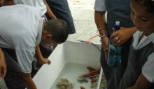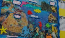The following day, primary school students and community members were invited to join Hol Chan Marine Reserve at the Annual Reef Fair held at the Central Park. Various environmental and wildlife organizations had the opportunity to showcase some of the work they do in the community. On display was art made from trash, a touch tank with living marine animals, a turtle nesting display area, and many fun games and educational booths.
