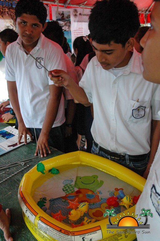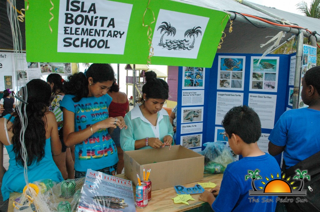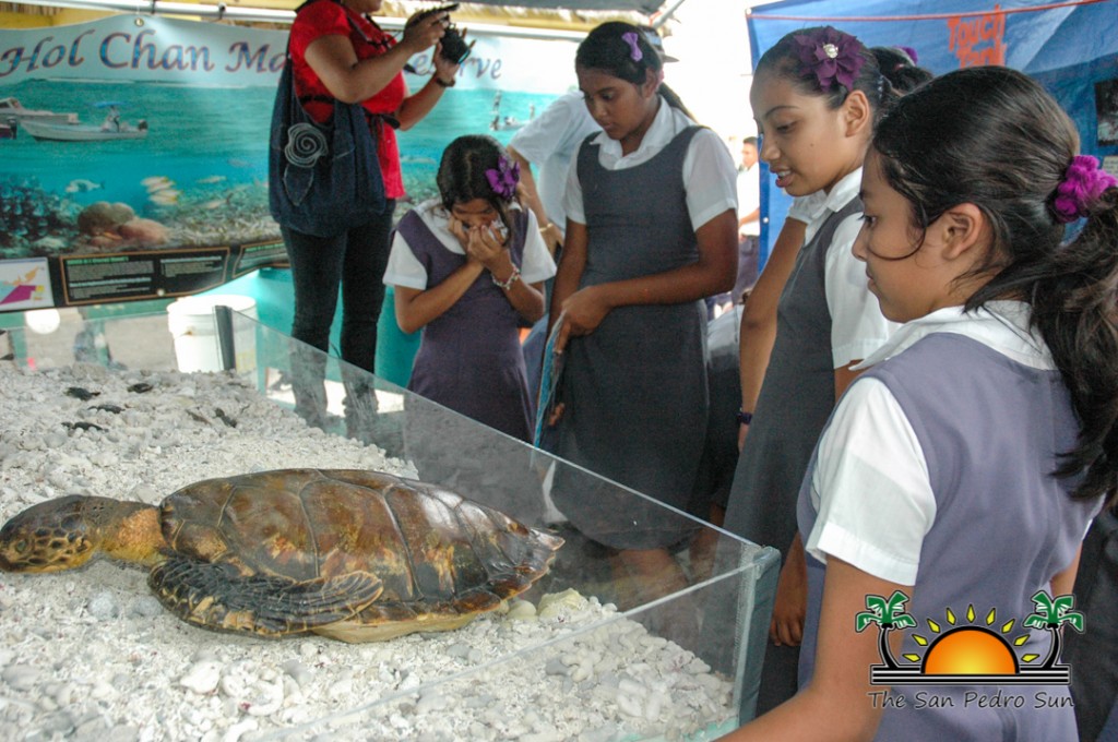 The following day, primary school students and community members were invited to join Hol Chan Marine Reserve at the Annual Reef Fair held at the Central Park. Various environmental and wildlife organizations had the opportunity to showcase some of the work they do in the community. On display was art made from trash, a touch tank with living marine animals, a turtle nesting display area, and many fun games and educational booths.
