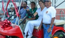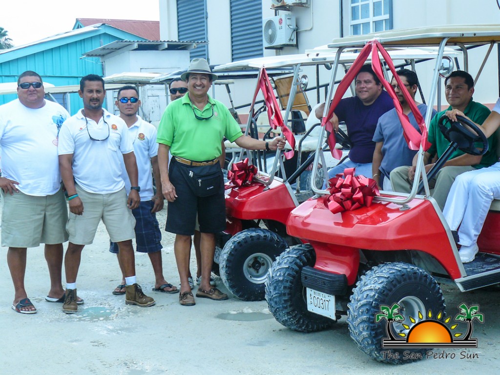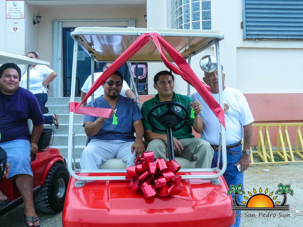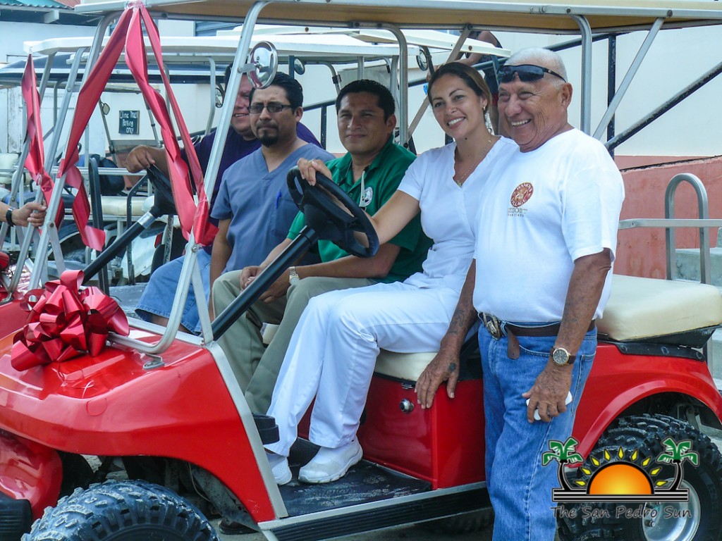 On site for the handing over of the two golf carts were Mayor of San Pedro Town Daniel Guerrero, Deputy Mayor Gabriel Nuñez, Councilor Severo Guerrero and Ramon Nuñez Sr. (who was representing the resort.) Receiving the keys to the carts were Dr. Javier Zuniga, Owen Vellos and Nurse Maria Jeffrey, who, on behalf of the Polyclinic, all expressed their gratitude for the much needed transportation.