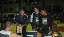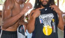 The third game was played on Sunday morning on Ambergris Caye infront of a very enthusiastic crowd. Darwin “Puppy” Leslie, Michael Adams, Tyrone Edwards, Jamal Kelly and Doug Penland led the charge for the Tigersharks. Ivan Flowers, Farron Louriano, Richard Troyer, Travis Lennon and Kurt Burgess were the front warriors for the Ballaz.