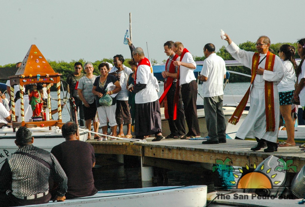 On the official day of Saint Peter, Sunday June 29th, celebrations included the traditional Misa de Pescadores (fishermen’s mass) at the San Pedro Roman Catholic Church at 4AM to give thanks for all the blessings Saint Peter has given San Pedro and to ask for a prosperous fishing year. Following the mass, San Pedro Town Council hosted a fishermen’s breakfast at the Lions Den. By 6AM all the fishermen gathered in front of Central Park for a boat procession. Leading the procession was the vessel with Saint Peter mounted on the bow of the boat. At the end of the procession the boats and the fishermen were blessed by Catholic priest Fr. Mark Wendling.
