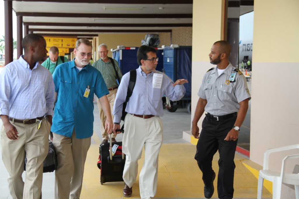 Mr. Arreaga was greeted by Embassy staff on the tarmac at Phillip S.W. Goldson International Airport, where he toured immigration and customs equipment funded by the United States.