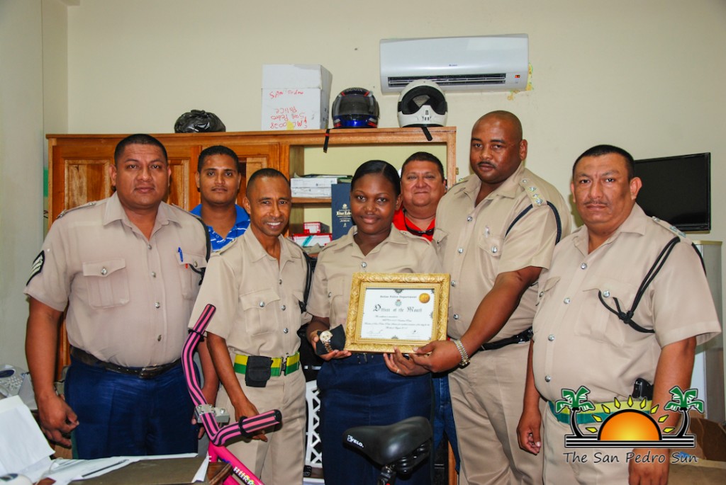 Woman Police Constable (WPC) 1672 Veralina Rivas was the proud recipient of August’s Officer of the Month Award. WPC Rivas was honored in a small ceremony on Monday, September 1st at the San Pedro Police Station. Her effectiveness and rational thinking in the past month earned her the recognition and prizes that come along with the title.
