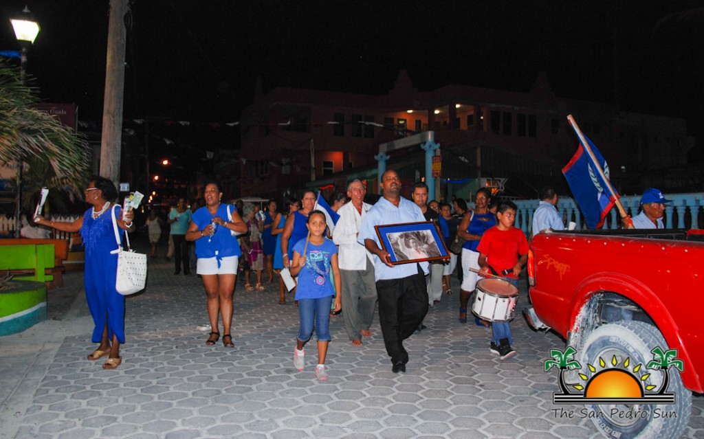 Later in the evening, a procession was held. Party members departed from the BRS PUP office with candles, flags and George Cadle Price portraits on hand as they made their way across town core to the San Pedro Roman Catholic Church. Immediately after the procession, a mass of thanksgiving was held.