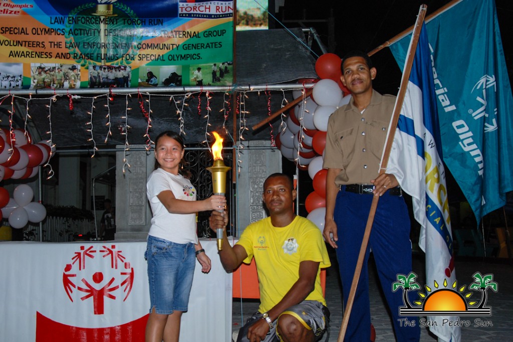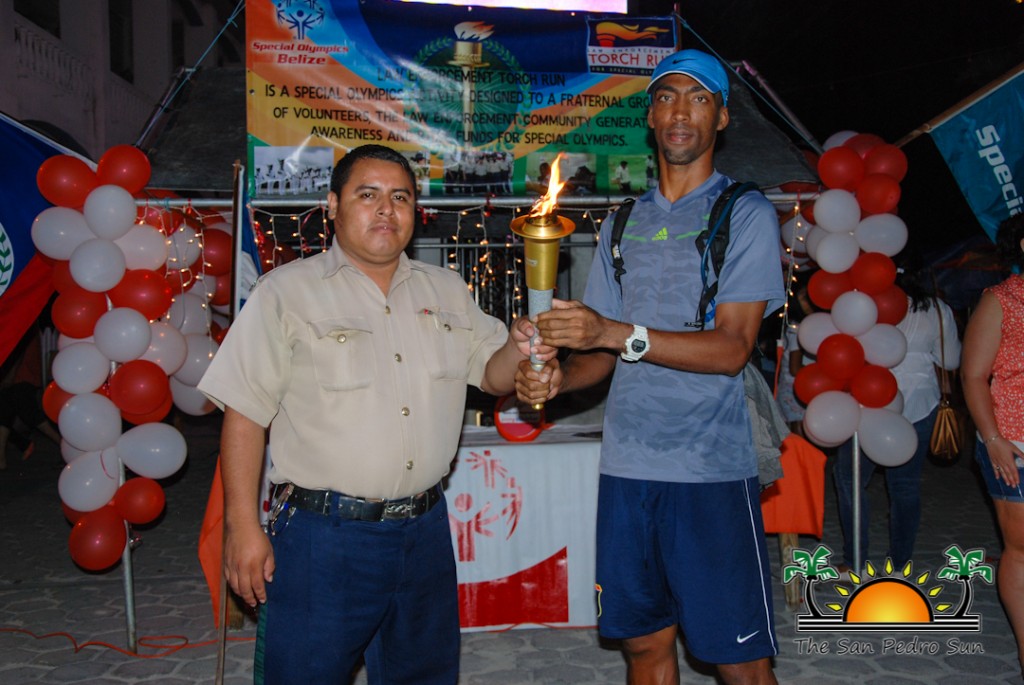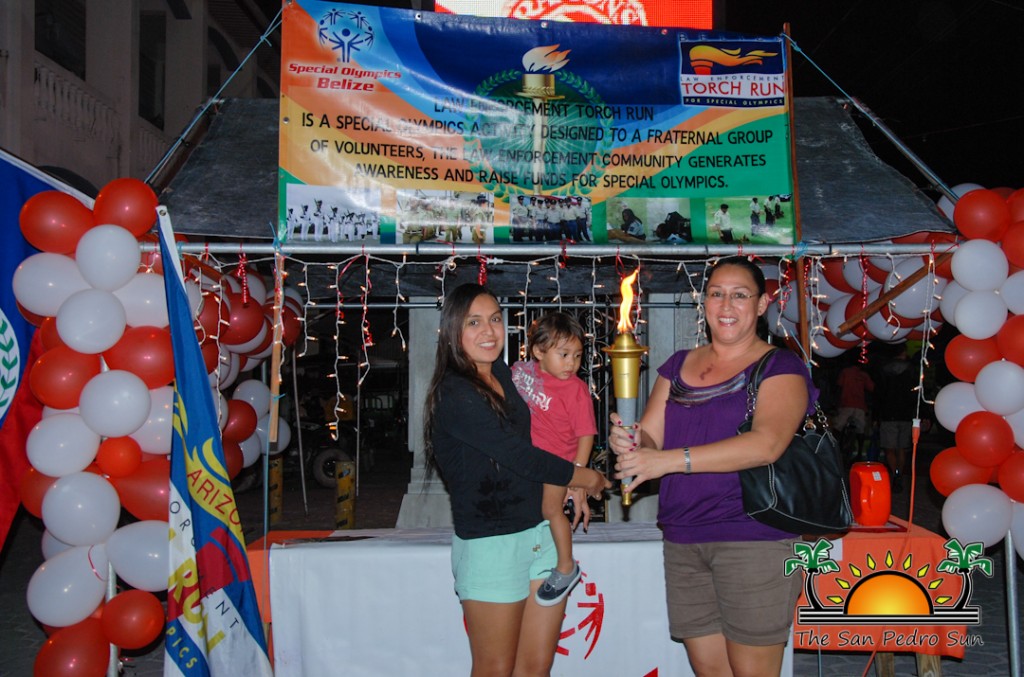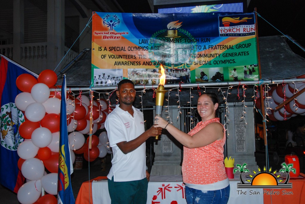 To celebrate the presence of the torch, Camp Starfish set up a booth in front of the town clock to share information on persons living with disabilities. Visitors to the booth took the opportunity to take a picture with the torch for a small donation. This helped raise much needed funds for Special Olympics Belize, while raising awareness of the cause. Belize Special Olympics Torch San Pedro-2Commanding officer of LETR, Sergeant 166 Elroy Carcamo stated that the torch is a symbol of hope within the Belizean community. “The torch run is held across the world and is a fundraising event to assist Special Olympics organizations. In 2012 the Belize Police Department along with other law enforcement agencies partnered with the Special Olympics Belize to support the cause by raising fund for the games. In 2013 $6,000 was raised by the torch run which was handed over to Special Olympics Belize in order to assist them with expenses. We expect to go well beyond this amount this year, with full support from the department and its partner agencies,” said Carcamo. At the end of the night Camp Starfish had raised $920 towards the cause.Belize Special Olympics Torch San Pedro-8