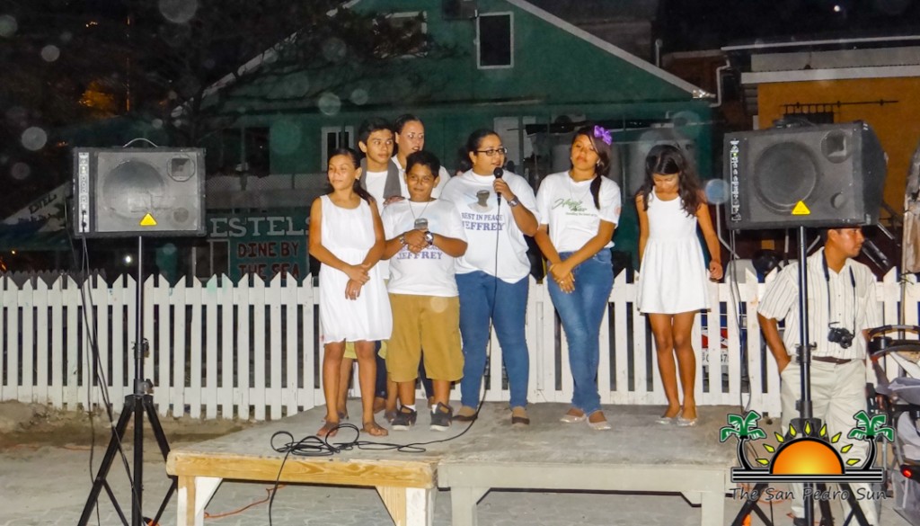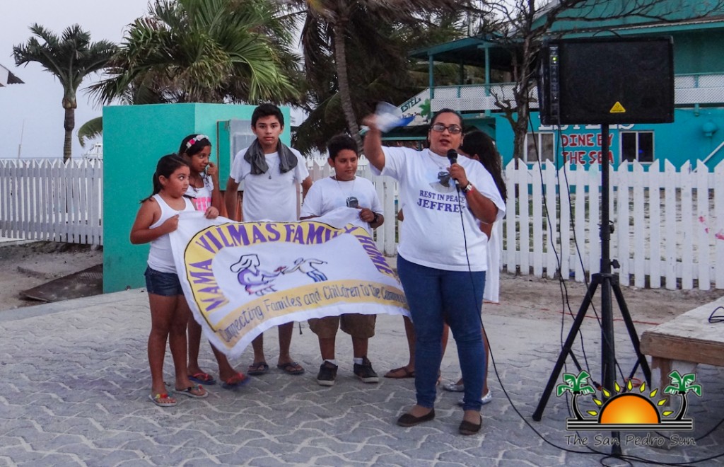 Following the walk, several speakers took to the stage reflecting on their passed loved one, as well as calling for the attention of authorities, government leaders and community in general to address the crime issue. First to talk was Monica Gamez, who spoke on behalf of her family and their emotions over the loss of Jeffrey Eiley who was killed in March 2014. Gamez called for justice asking the community to assist in identifying those responsible for committing any crime on the island. One of the founders of Footprints for Peace, and father of Jeffrey Eiley, Norman Eiley also addressed the crowd. He pleaded for community unity so that no more lives are lost to crime. As a long time island resident, Eiley has seen San Pedro develop from a quiet fishing village to a populated tourism destination that is being plagued by violence. “I just want to ask everyone to come together and reclaim our island. I have already lost a son to violence. I do not wish that to on anyone else,” said Eiley.