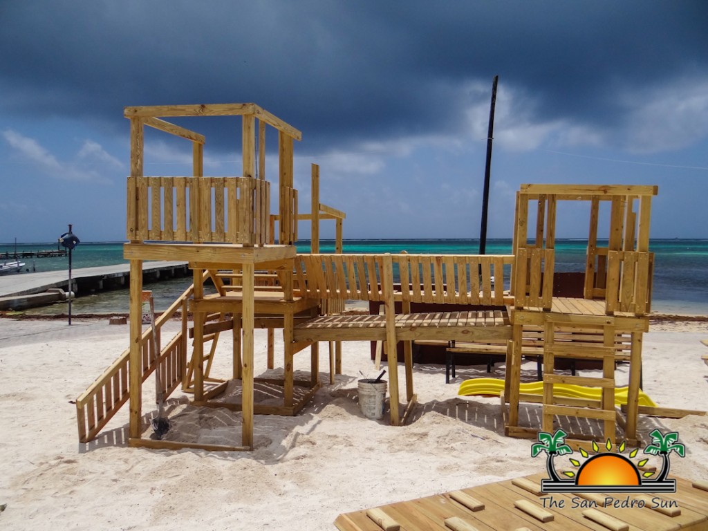 The children of San Pedro will soon be enjoying a new playground set at Central Park. Courtesy of Blue Water Grill’s (BWG) Monthly Donation Program, the wooden playground set has replaced the old deteriorated set that used to sit on the sandy left corner of the Central Park. The 30 feet playground set cost $4,249.52BZ, and while a portion of the money was raised through the April Monthly Donation Program, the difference was paid by BWG, including delivery fees. Even the San Pedro Town Council (SPTC) came on board with the project, as they are covering installation and paint expenses.