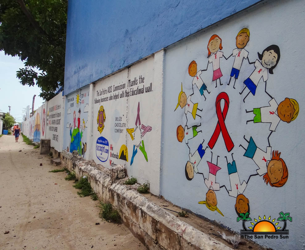 The San Pedro AIDS Commission (SPAC) has completed its community beautification project on the fence/wall of the southern side of the San Pedro Roman Catholic Primary School (SPRC). The object saw the repainting of the wall white, with bright colorful messages on HIV/AIDS awareness painted on top. The project is meant to give a new look to the heavily trafficked alley that was covered in unsightly graffiti. Over the course of the beatification project, vandals defaced the paintings, causing setbacks and increasing the cost. Now that it is finally complete, SPAC urges everyone to care for the wall and to condemn vandalism.