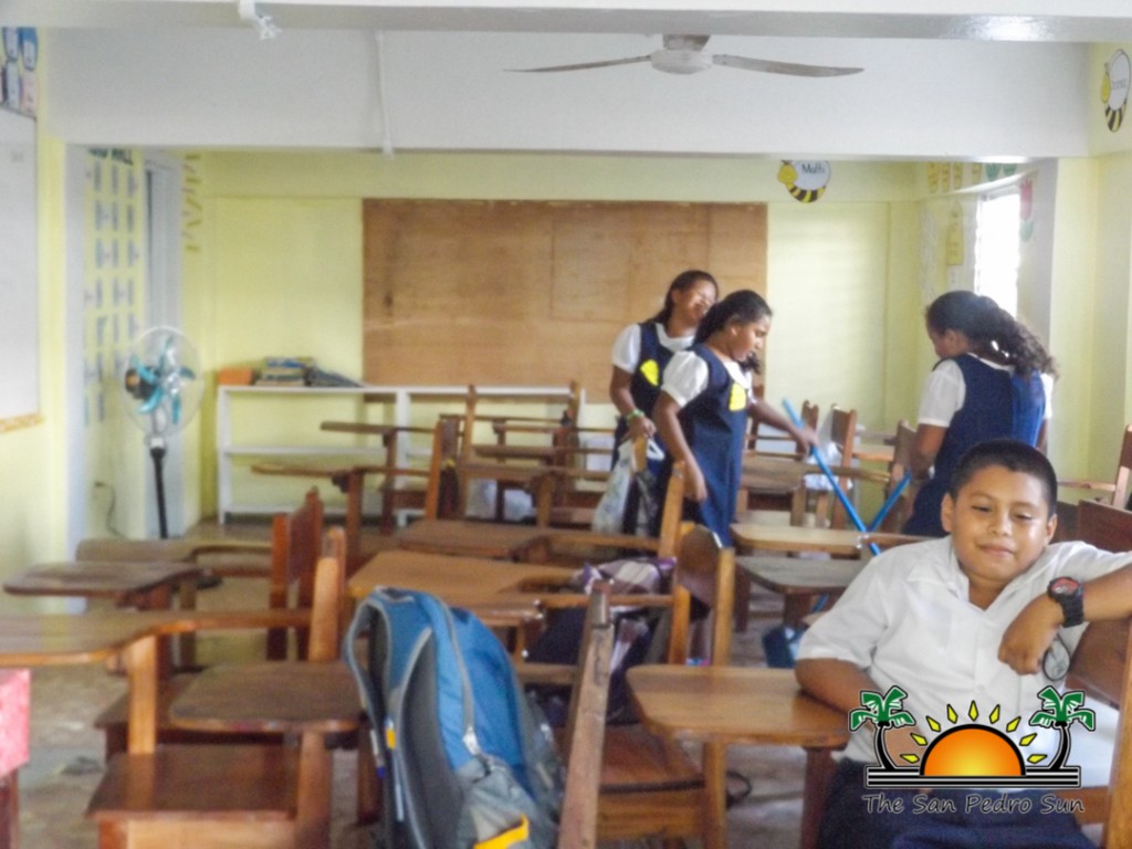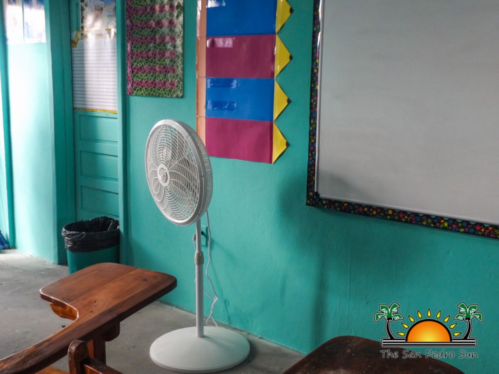 The faculty, staff and students of San Pedro Roman Catholic School would like to extend a big thank you to Kelly and Mukul Kanabar of Blue Water Grill and The Phoenix Resort for their most generous donation to the school. The company’s donation consisted of 20 standing fans, the installation of 15 ceiling fans, and $2,400 cash, which was used to replace classroom lighting fixtures and purchase new windows and doors.