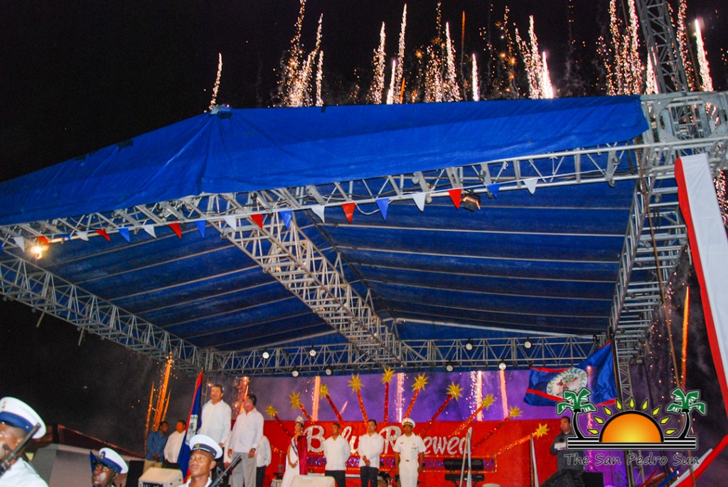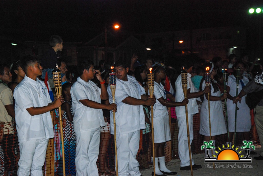 The ceremony kicked off with the introduction and arrival of the various dignitaries. After all the invited guests were seated, the island’s beauty ambassador Miss San Pedro Iris Salguero was escorted by Deputy Mayor Gary Greif and the San Pedro High School Marching Band. There was a series of Independence Day speeches delivered that night by the town’s various leaders.