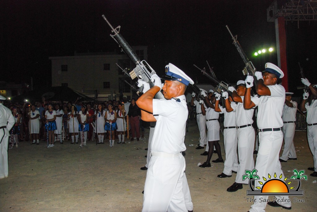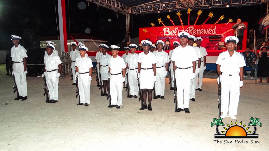 After the speeches, the program continued with some cultural presentations leading to the midnight Flag Raising Ceremony. Members of the Belize National Coast Guard started the ceremony as they marched in, led by Vice Commandant Elton Bennett. The inspection of the Guard of Honour was done by the Honorable Manuel Heredia Jr and Mayor Daniel Guerrero.