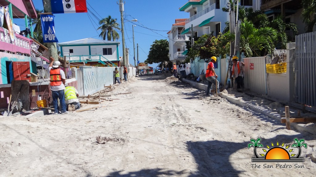 The San Pedro Town Council’s (SPTC) street rehabilitation efforts continue with the cementing of Sandpiper Street. Work on the street commenced on Friday, October 23rd and is expected to be completed by Tuesday, November 3rd in preparation for the 2015 General Elections. Sandpiper Street is located just right of the roundabout connecting Pescador Drive to Boca del Rio Drive. Due to its proximity to both the San Pedro High School and the beach area, Sandpiper Street is a heavily trafficked area, and as such the upgrade of the street will facilitate traffic.
