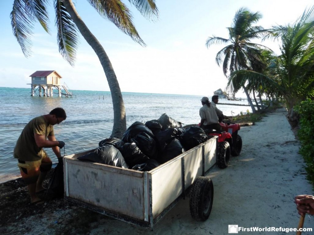 On Sunday, November 8th, the beach between Grand Caribe Resort south to Palapa Bar was cleaned up thanks to the combined efforts of two resort residents and some hardworking staff. Lisa and Ronnie Cyrier, along with 15 staff members from Grand Caribe collected a trailer full of garbage that had been washed up on shore during the recent inclement weather. Garbage remains the main issue across the island, but with the recent heavy rains, an exceptional amount of garbage has washed up on the beaches of Ambergris Caye.